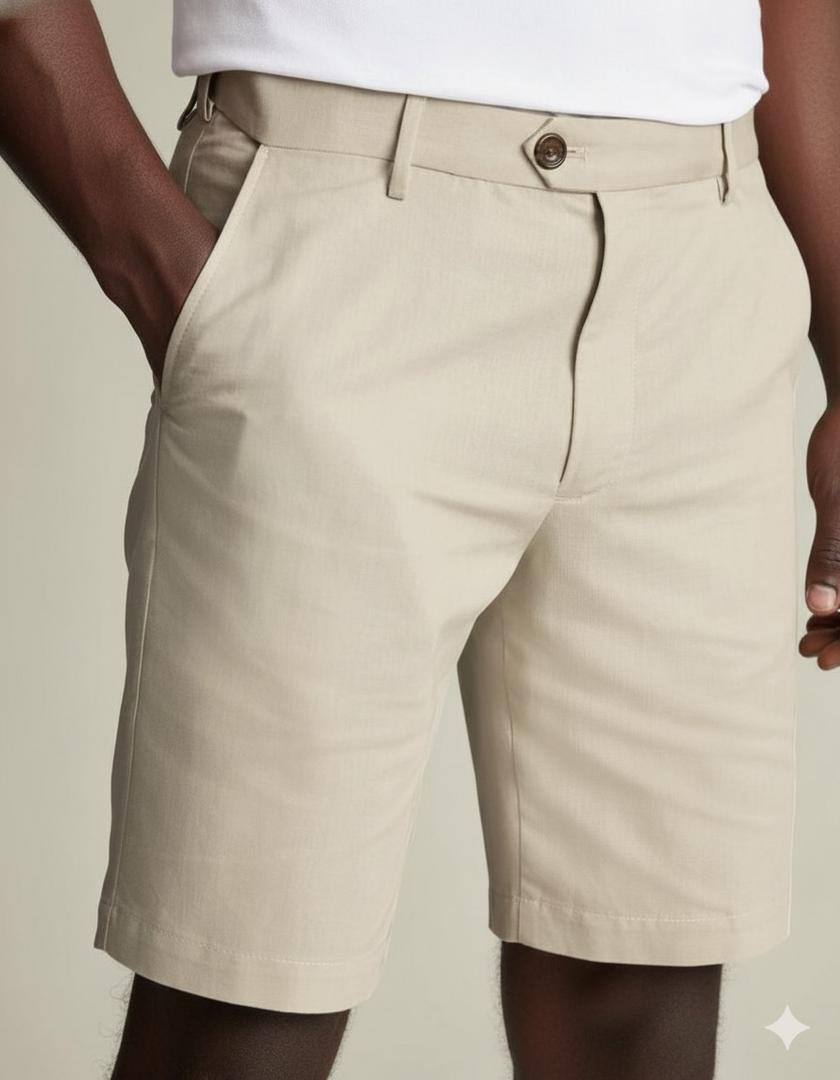 Elevate your warm-weather wardrobe with these versatile khaki shorts. Crafted from lightweight, breathable fabric, they feature a classic button-fly closure and relaxed fit through the thigh and knee. Perfect for casual outings or dressing up for a smart, effortless look.