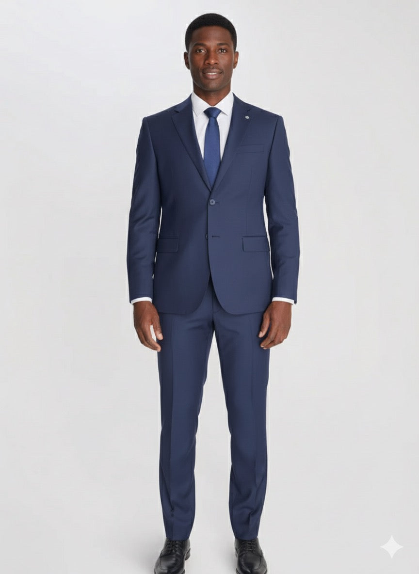 CARTER & JONES NAVY suit exemplifies sophistication and elegance, featuring a tailored black complemented by a classic tie. Crafted from high-quality materials, this ensemble is designed for the modern gentleman, ensuring a sharp and polished appearance for any formal occasion. The sleek silhouette and attention to detail make it a versatile addition to any wardrobe, perfect for business meetings or special events.